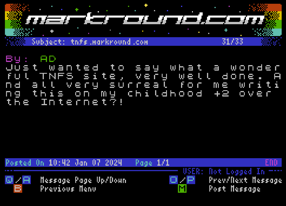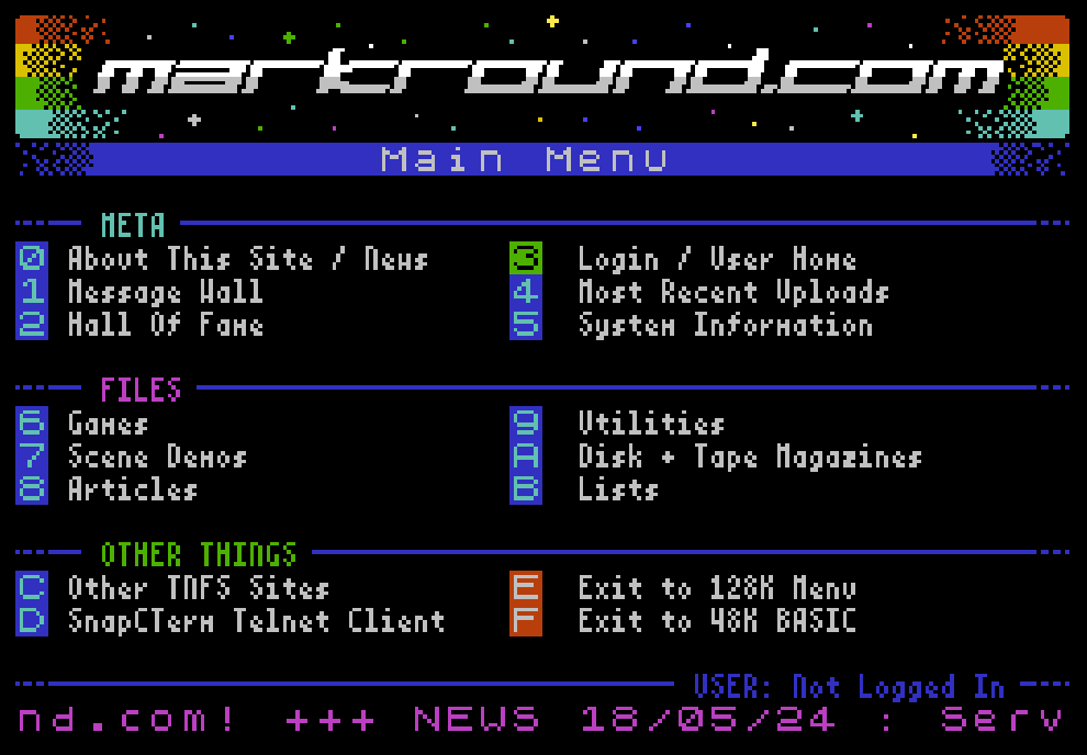 Welcome to the website for my TNFS server project: A site for the 1980s 8-bit Sinclair Spectrum computer fitted with a Spectranet ethernet expansion (or Emulators like FUSE). I wanted to give something back to the community that started my interest in computers all those years ago, so I started this site with the aim of building the most up-to-date and fun TNFS archive available for the ZX Spectrum. I wrote a 4-part series of articles covering the building of this site - check out DevOps For The Sinclair Spectrum on my Blog, and the site has also been featured on YouTube - take a look at The Spectrum Show #107!